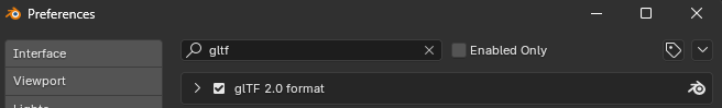 - Enable Import-Export: glTF 2.0 format